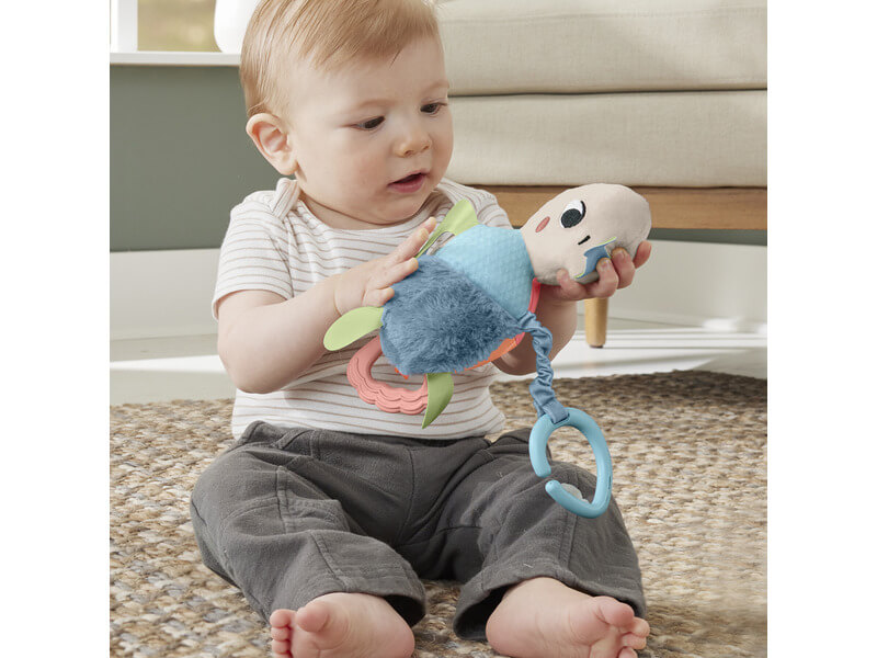 A fogóka megfogása és meghúzása fejleszti a kézügyességet és a szem- kéz koordinációt, miközben a különböző anyagok, hangok és színek fejlesztik a kicsik taktilis, auditív és vizuális érzékeit.