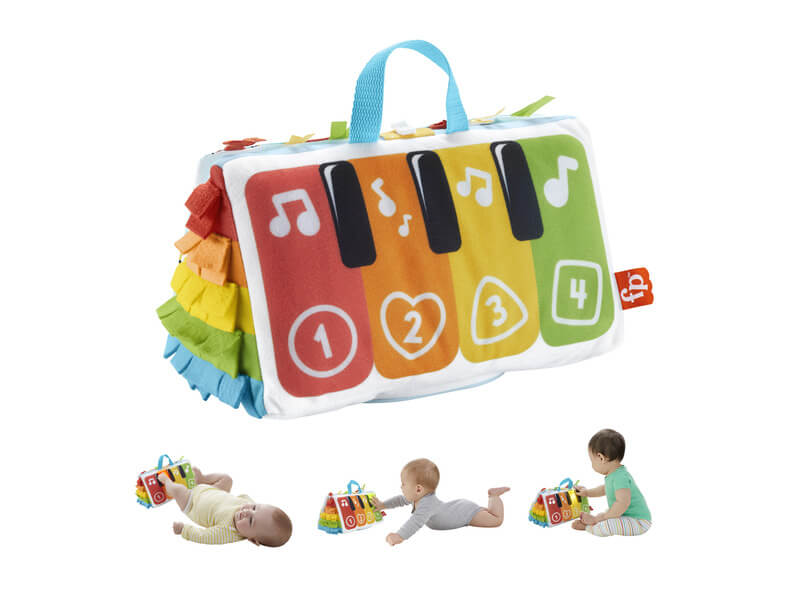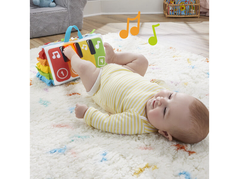 A Fisher-Price rugdalozó talpak zongora összes izgalmas hangját, fényét és rúgását egy puha és hordozható játékká egyesíti. A puha zongora 4 billentyűt tartalmaz világítással és zenével, amelyek akkor aktiválódnak, amikor a baba rúg. A lágy zongora minden oldala nagy kontrasztú színekkel és magával ragadó szenzoros játékkal rendelkezik. Ráadásul kompakt méretének köszönhetően tökéletes utazáshoz.