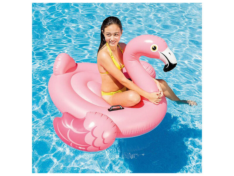 Élvezd a napsütést és a hűsítő hullámokat ezen a szuper flamingó felfújható vízi játékon, melynek élénk színe felkelti majd a strandon is a figyelmet. A felfújható lovagló a gyerekek és a felnőttek számára is élvezetes játékot és pihenést biztosít, melynek két kapaszkodója is van, hogy a játék hevében se ess bele a vízbe. A flamingó nagy fekvőfelülettel rendelkezik, feje a magasba nyúl. Élvezd a nyeret a strandon a felfújható flamingóval! Jellemzők: – Flamingó mintával – Élénk színekkel – Bőrbarát anyagból készült – 2db kapaszkodóval felszerelt – Javítószett tartalmaz – Anyaga: 0,30mm vinyl – Mérete: 142x137x97cm