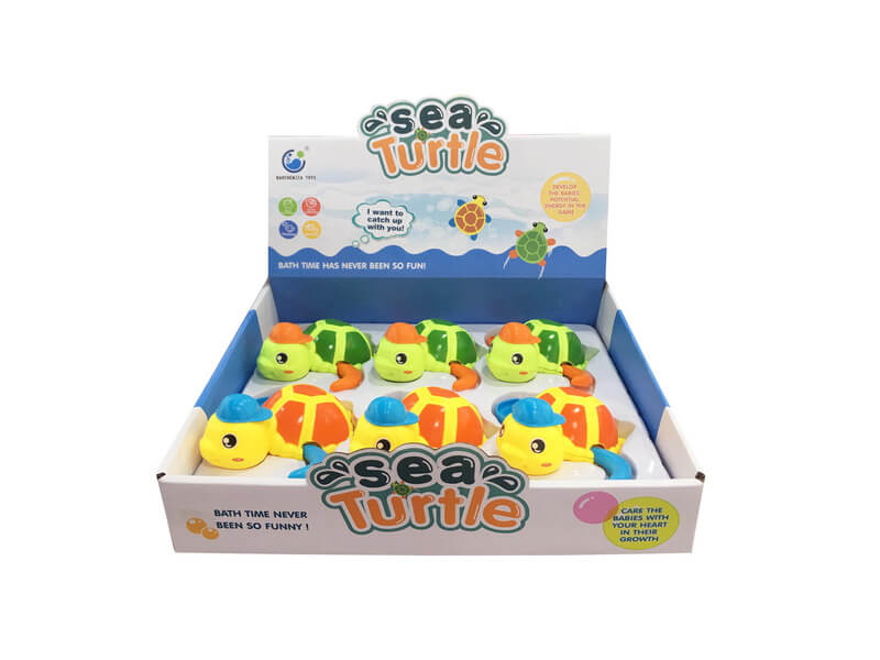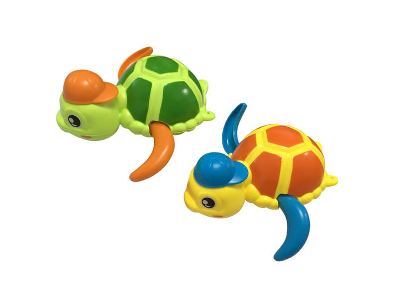 Többszínű úszó teknős, melyet egyszerűen fel lehet húzni. A teknős gyors uszonycsapásokkal úszni fog a víz felszínén. Aranyos vizíjáték gyerekeknek a szórakoztató fürdéshez.
