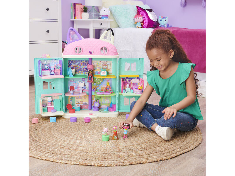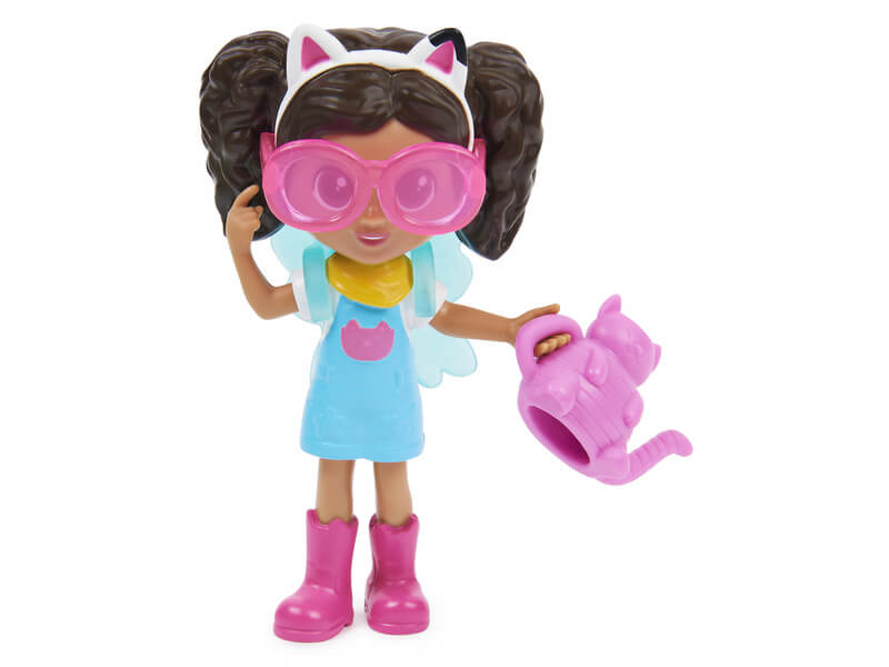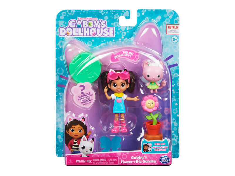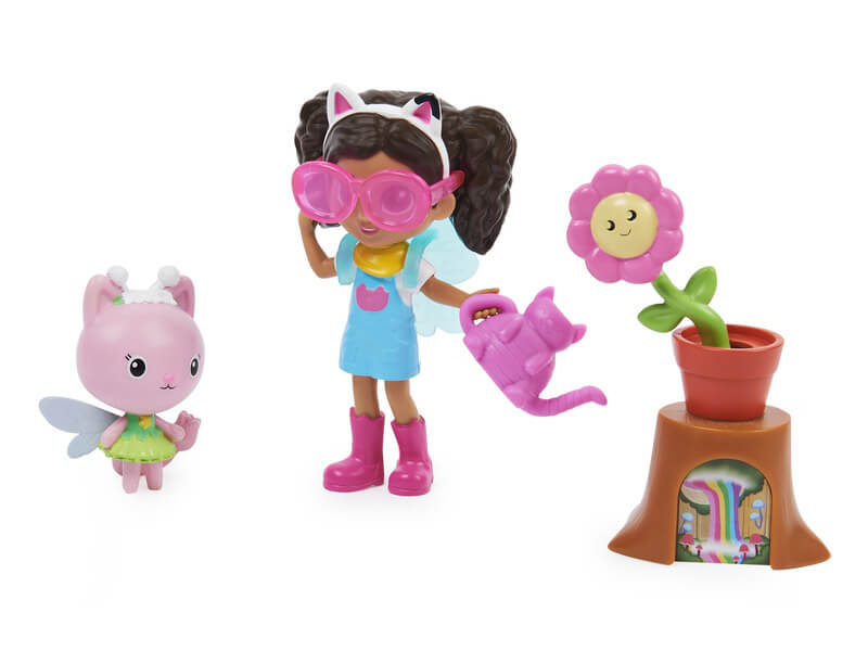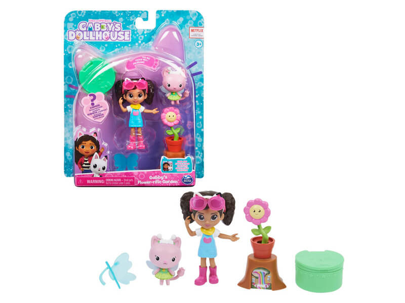 Ez a vidám játékkészlet egy 9 cm-es Gabi baba figurát, egy Kitty Fairy figurát, egy fatörzs bútorelemet cserepes virággal, egy tündérszárnyas kiegészítőt, valamint egy Dollhouse Delivery dobozt is tartalmaz meglepetés kiegészítővel. Akárcsak Gabi a sorozatban, a lányok is kibonthatják különleges csomagjukat, és felfedezhetik a különleges kiegészítőt. A felfedezés után csak a fantázia szabhat határt a játékhoz. Rögzítsétek a tündérszárnyakat Gabihoz, majd helyezzétek a kezébe a meglepetés kiegészítőt! A macskafüleit megnyomva a napszemüvege leesik az arcára, újra lenyomva pedig felemeli a napszemüveget. A babarózsát előre-hátra mozgatva táncra perdül a cserépben. Újabb meglepetésért a gyerekek beszkennelhetik a QR-kódot, hogy feloldjanak egy különleges jutalmat az ingyenes Gabby’s Dollhouse applikációban (elérhető iOS-en és Androidon). A készlettel újrajátszhatják a sorozat kedvenc jeleneteit vagy a fantáziájuk segítségével újakat találhatnak ki. Csomagolás mérete: 18 x 5 x 22 cm
