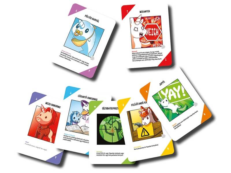 Toborozd össze a legjobb unikornis hadsereget és nyerd meg a játékot! Az Unikornisok: A rémes ménes kártyajátékkal, hatalmas szórakozásban lesz része minden unikornis rajongónak. A játékot először mindenki a Baby Unikornis kártyával kezdi. Innen kell felfejlesztened magad, miközben különböző mágikus lépéseket kell hoznod a győzelem érdekében. A kártyajáték nem ismeri a kegyelmet, hátráltasd a többieket és akadályozd meg, hogy az ő unikornis seregük jusson győzelemre. Egyszerre kell küzdened a saját unikornisaidért, miközben a többiek ellen kell cselszövéseket is véghezvinned. Izgalmas kártyajáték, melyet 8-an is lehet játszani, így akár egy buli alkalmával is előkerülhet az unikornisos móka! Fejleszd fel magad a legmagasabb szintre és szedd össze a legjobb unikornisokból álló hadsereget! A játék nem mellőzi a többiekkel szembeni sunyiságot, így résen kell lenned ki akar éppen téged megtámadni. A készlet tartalmazza a kártyajátékot és a részletes leírást.