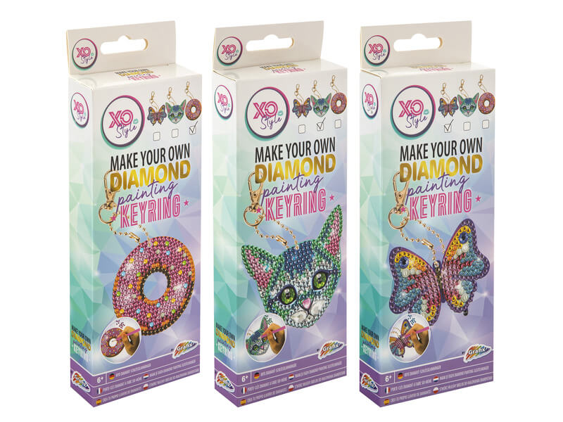 Grafix -Csináld magad gyémántfestős kulcstartó 3 féle változatban : fánk, macska, pillangó. Kérjük hogy a megjegyzésbe tüntesse fel, hogy melyik változatot kéri. Készítse el saját gyémánt kulcstartóját! Minden készlet tartalmazza a kulcstartó elkészítéséhez szükséges összes felszerelést. A gyémántfestésű kulcstartók biztonságos és szórakoztató módszert nyújtanak a fiúk és a lányok számára, hogy játszva tanuljanak. Úgy tervezték, hogy javítsa a figyelmet, a finommotorikát. Gyermekének is jó időtöltés, de akár a szülőkkel közös időtöltés is lehet.