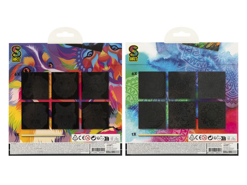 Kétféle változatban. Kérjük hogy a megjegyzésbe tüntesse fel, hogy melyik változatot kéri. Karcolj és kaparj, a végeredmény pedig egy gyönyörű kép lesz. A kaparóval a körvonalak mentén el tudod kezdeni leszedni a réteget, és amikor már elkészültél, színváltó felület jön létre, ami egy gyönyörű képet ábrázol. A képet keretbe téve, akár a szoba dísze is lehet, vagy ajéndéknak is megfelelő ajándék. A készlet tartalmazza a kaparót is. 6 db kép van 1 csomagban.