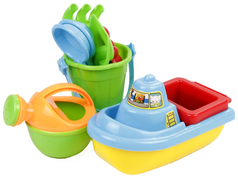 Építs homokvárakat, vagy úsztasd a kishajót! A Homokozó 9 darabos készlet kishajóval műanyagból készült bástyás homokozó vödröt, kannát, szitát, lapátot, gereblyét és homokozó formát tartalmaz, egy színes műanyag kishajóval. A játékokat a homokozóban, de a strandon, vízparton is tudod használni, építs szép homokvárakat, áss köré árkot és úsztasd a hajót! A Homokozó 9 darabos készlet kishajóval hálós csomagolású.