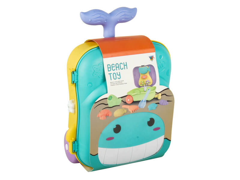 Elképesztően aranyos és praktikus homokozó szett bálnás bőröndben. A bőrönd kihúzható nyelű, kerekeinek köszönhetően húzható. A bőröndben találsz lapátot, gereblyét, öntőformákat. A színes és érdekes formák minden gyerek figyelmét felkeltik és lekötik. A bőrönd belsejében beépített vízimalom nyújt izgalmas szórakozást a kicsiknek. Magas minőségű anyagból készült, ellenáll mindenféle időjárásnak és hosszú ideig társad lesz a játékban.