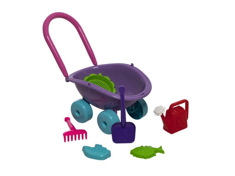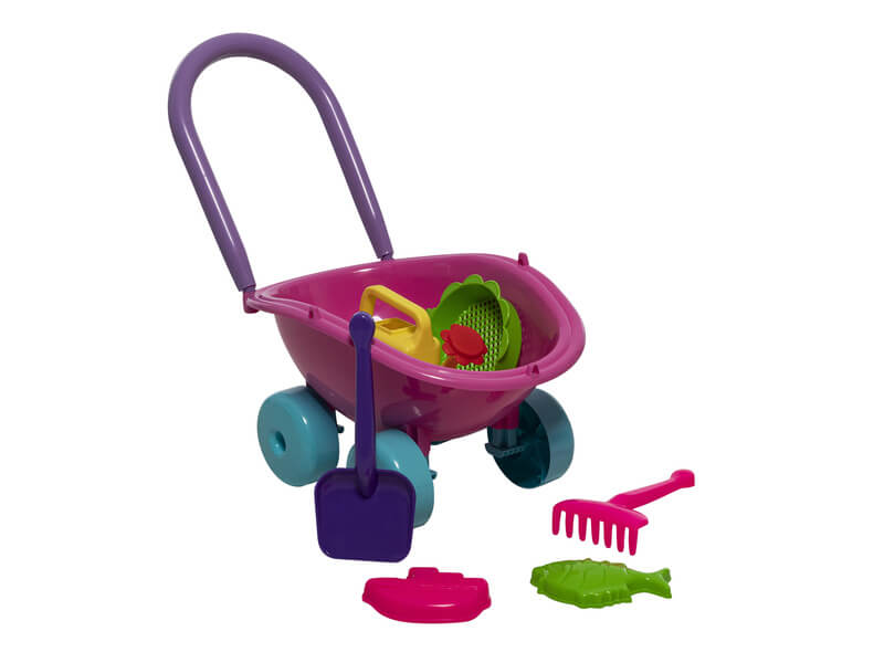 A kisgyerekek egyik kedvenc időtöltése a homokozás. Nemcsak a kreativitást fejleszti, hanem a finommozgás képességét is. Az ujjak mozgatása hatással van a szellemi fejlődésre. Ezért javasoljuk már a legkisebbeknek is a homokozást. A talicskába lapátolható homok, föld de rakható bele más játék, akár labda is. Kislányok a formája miatt játék babát is ültethetnek bele. A talicska rakodó mérete: kb. 36 cm x 26 cm. Ajánlott életkor: 18 hónaptól – 6 éves korig. A készlet tartalma: talicska, lapát, gereblye, szita, vödör, és homokozó formák.