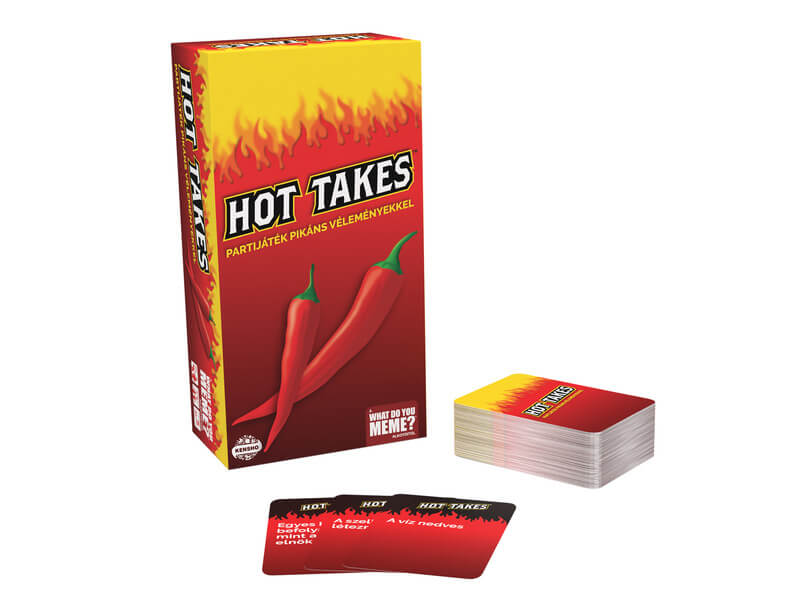 Hot Takes egy beszélgetésindító partijáték. Teszteljétek a barátságotokat, osszátok meg egymással a véleményeteket, és fedezzétek fel, miben értetek egyet és miben nem. Ki tud jobban érvelni és prezentálni? Ki szerzi a legtöbb pontot? Derítsétek ki egy komoly és izgalmas partijátékban! A játékban 300 Hot Take kártya, 10 véleménykártya, pontozó kártya és egy útmutató lesz a segítségetekre. A játék során válasszatok egy házigazdát, aki minden körben húz egy kártyát a pakliból. A kártyán szereplő megállapításról alkotott véleményetek alapján alkossatok csapatokat, majd 3 percben építsétek fel és prezentáljátok érveiteket a téma kapcsán. A bíró dönti el, hogy melyik csapat érvelt jobban, a győztes csapat minden játékosa kap egy pontot. Majd jöhet egy újabb kör, amiben lehet, hogy a korábbi csapattársad az ellenkező csapatban lesz. A játék végén az nyer, aki a legtöbb pontot szerezte. A Hot dog egy szendvics – Egyetértesz? – Nem értesz egyet? Érvelj és prezentáld a Hot Takes partijátékában!
