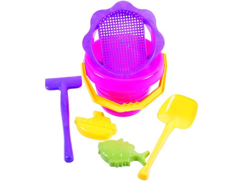 Hullámos homokozó 6 darabos készlet Többféle színben. Vödör színek: zöld, kék, rózsaszín, lila. Kérjük hogy a megjegyzésbe tüntesse fel, hogy melyik színt kéri. A homokozó szett a játszóterezések elengedhetetlen kelléke. Ha itt a jó idő elkészülhetnek a legszebb homokvárak és formák. A készlet 6 db homokozó kelléket tartalmaz. Mérete: 20 x 20 x 30 cm.