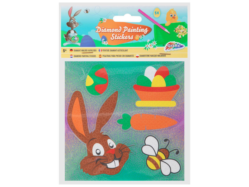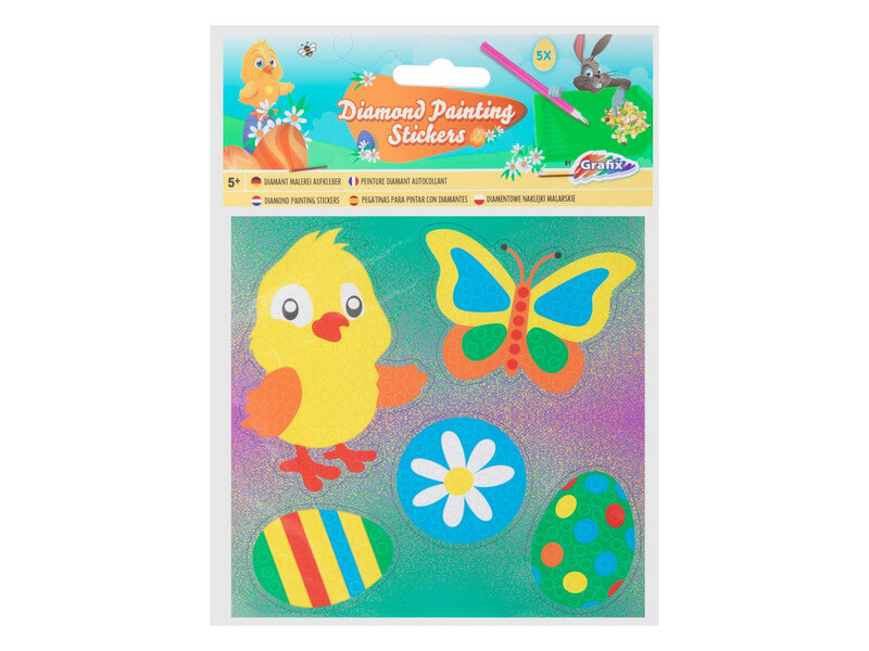 A Gyémántfestés szett – Húsvéti matricák (5 db/csomag) egy szórakoztató és kreatív termék, amely lehetőséget ad a gyerekeknek és felnőtteknek, hogy gyönyörű gyémántmintákat készítsenek húsvéti témában.