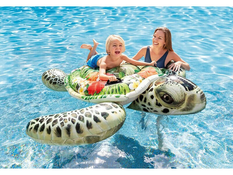 Ülj fel a teknősbéka páncéljára, és ringatózz a medencében! A Teknős felfújható lovagló egy élethű, PVC-ből készült zöld teknőc, akinek a hátára ülve élvezheted a hűsítő habokat. A lovagló kapaszkodókkal van felszerelve, biztonsági szelepen keresztül fújható fel, a játék lényege, hogy minél tovább fent tudj maradni a teknős hátán, mielőtt beleborulsz a vízbe. A Teknős felfújható lovagló méretei: 191 x 170 cm.