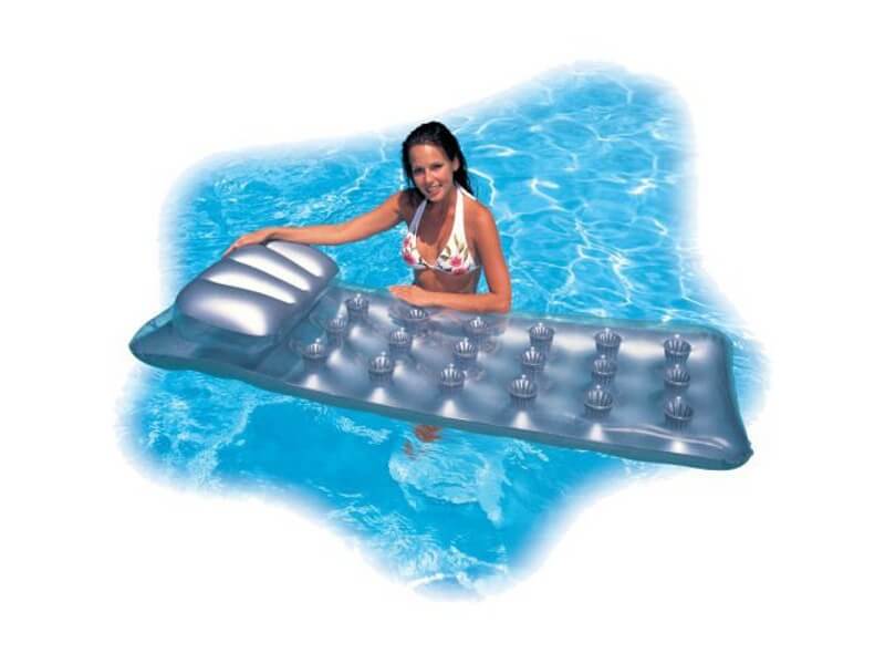 Ezüstszínű poharas matrac a forró nyári napokra! A Poharas matrac igazi kényelmes pihenést biztosít akár a medence közepén is. A matracot biztonsági szelepen keresztül tudod felfújni, a matrac nagyon erős, előre tesztelt műanyagból készült. Felfújt méretek: 188 x 71 cm.