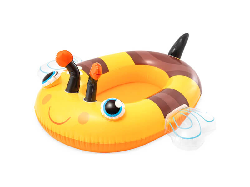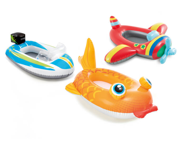 Csónakázz a medencében a felfújható gyerek csónakban! A Felfújható gyerek csónak könnyedén lebeg a víz felszínén, kényelmesen pihenhetsz, napozhatsz a fedélzetén. A csónak két kamrás kialakítású, mindkét kamrához külön-külön biztonsági szelep tartozik. A készlet egy javító foltot is tartalmaz, a csónak versenyautó, hal vagy kalózhajó formában kapható. Felfújt méretek: 100 x 97 cm.