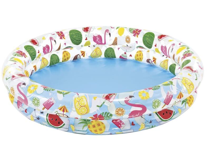 Vidám mintás kétgyűrűs kismedence a forrónyári napokra! A mintás kétgyűrűs medencében a pici a forró napokon is kellemesen tud hűsölni, pancsolni. A kétgyűrűs medence bárhol elfér a kertben és biztonsági szelepekkel van ellátva. A készlet tartalmaz egy javító tapaszt is. Felfújt méretek: 122 x 25 cm. A játékok külön kaphatóak.