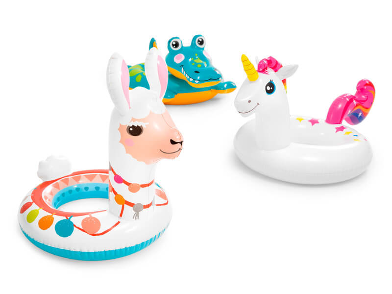 A cuki, állatfejes úszógumikban biztosan vidám lesz a pancsolás. A vicces, színes állatkák láma, unikornis és dinó formában érkeznek a gyerekekhez. Mérete: 86 x 58 cm.