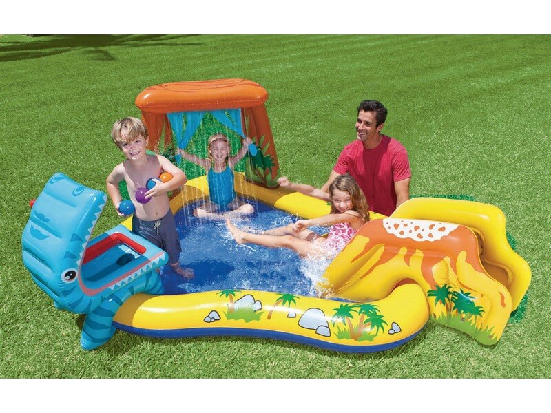 Pancsold át a forró napodat az aranyos kis medencédben! A Dinoszaurusz játékcenter nem csak egy egyszerű felfújható gyerekmedence, hanem egy extra párnázott csúszdával, levehető spriccelővel, felfújható dinóval és 6 darab színes dinoszaurusz kajagolyójával ellátott szuperszórakoztató mini strand! Mulasd hát át a nyári szünetet barátaiddal, és lubickoljatok a vízben kifáradásig. A Dinoszaurusz játékcenter méretei: 249 x 191 x 109 cm. A terméket 2 éves kortól ajánljuk.