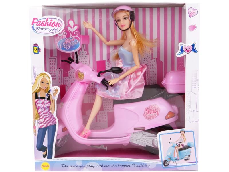 Száguldj el a divatbemutatóra kétkerekű kismotoron! A Játékbaba robogóval egy műanyagból készült divatbaba, mozgatható végtagokkal. A babát fel tudod ültetni a robogójára, add a fejére a sisakot, és már indulhat is a száguldás! A motort le tudod támasztani, a játék együtt használható más babákkal, divatos játékokkal is. A Játékbaba robogóval baba mérete: 28 cm. A robogó színe: rózsaszín.