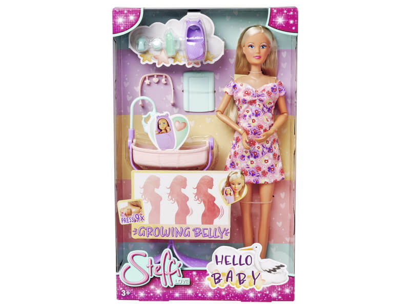 Steffi terhes baba lehet most gyermekedé, aki egy nagyon szép szettben érkezik, mely tökéletesen passzol gömbölyödő hasára. Steffi a jól ismert szőke hajjal érkezik, melyet fonni is lehet. A baba hasában egy kisbaba lapul, ám az meglepetés, hogy kisfiú vagy kislány. Ez akkor derül ki, ha a szettben lévő meglepetés csomagot felbontja gyermeked, hiszen ebben találhatóak meg a különböző kiegészítők, melyek elengedhetetlenek a kisbabák részére. Szerezd be gyermekednek és kezdődhet a játék, ahol együtt gondoskodhatnak Stefi kisbabájáról.