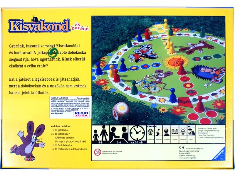 Fussatok versenyt a Kisvakonddal és barátaival! A Kisvakond és barátai egy klasszikus tár-sasjáték, a ki nevet a végén kisebbek számára készült változata. A dobókockán pöttyök helyett kis képeket láttok, ami megmutatja, melyik mezőre léphettek. Minden játékos 4 bábuval kezd, és az nyeri a Kisvakond és barátai társasjátékot, aki mind a négy figurával először ér a célba.