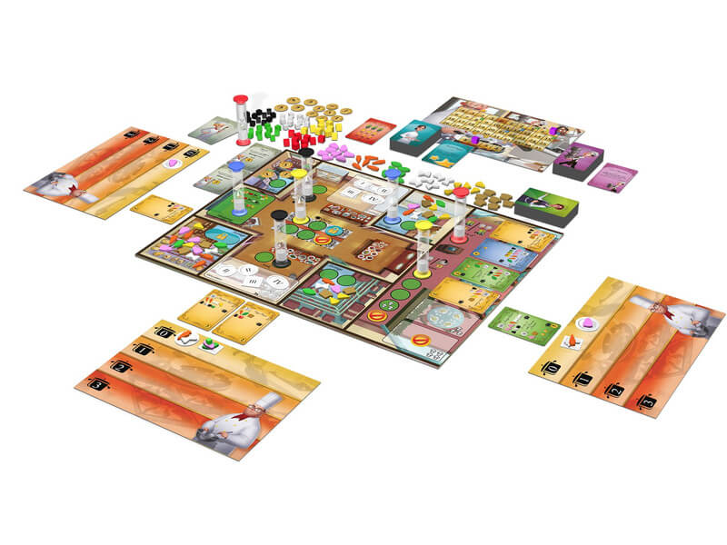 Tartalma: 111 kártya, 108 hozzávaló, 8 játéktábla, 4 játékostábla, 1 hírnév tábla, 10 homokóra, 1 zsák, 56 fűszer, 35 érme, 22 tányér, 17 jelző és 1 szabályfüzet.