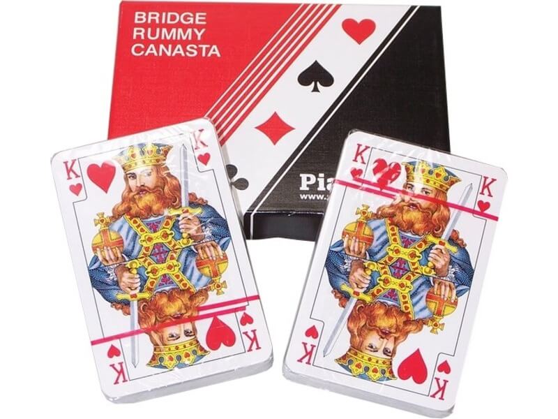 Játsszatok römit, vagy kanasztát klasszikus francia kártyával! A Klasszikus 2 x 55 lapos römi kártya kartonból készült két paklis készlet, amivel póker, bridge vagy egyéb kártyajátékokat is lehet játszani. A kártyalapok szép festésűek, a hátlapjuk kék és piros mintával van borítva. Kártyalapok mérete: 9 x 6 cm.