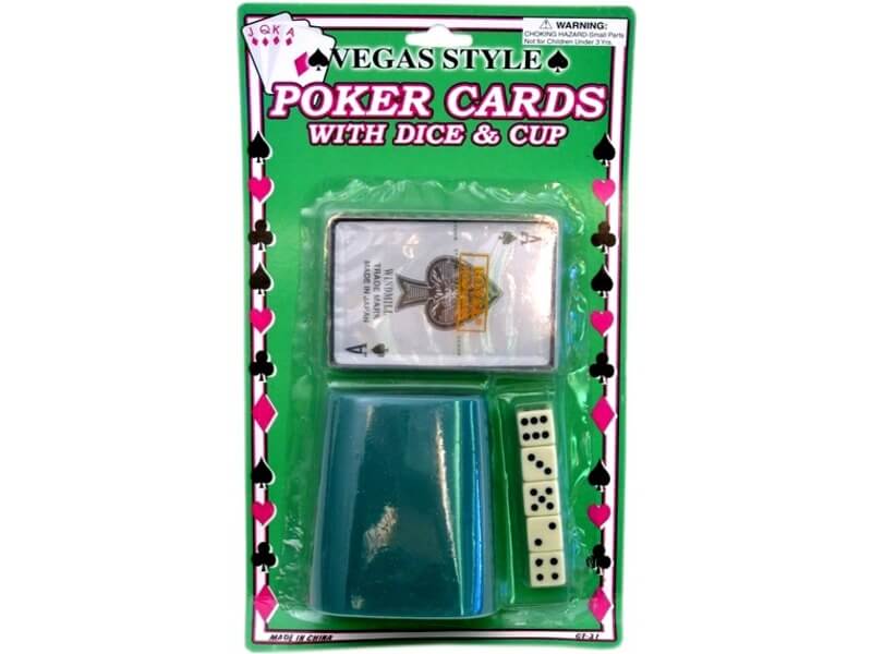 A doboz tartalma: 5 db dobókocka, műanyag pohár, 1 pakli francia kártya, játékszabály.