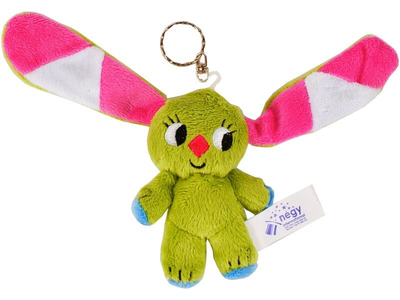 Gyerekkorunk kedvenc mesehőse, a Kockásfülű nyuszi, kulcstartó változatban! A Kockásfülű nyúl álló kulcstartó plüssfigura a zöld nyuszit testesíti meg, puha plüssből. A nyuszinak hatalmas, rózsaszín-fehér kockás fülei vannak, nem csak kulcscsomódra, de hátizsákodra is felteheted! Méret: 9 cm.