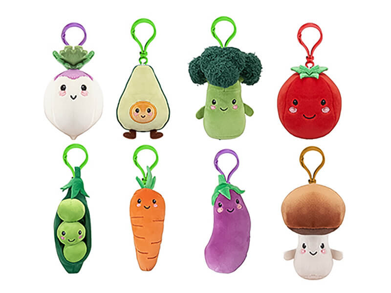 Kulcstartó, 12 cm plüss zöldség, 8 féle
