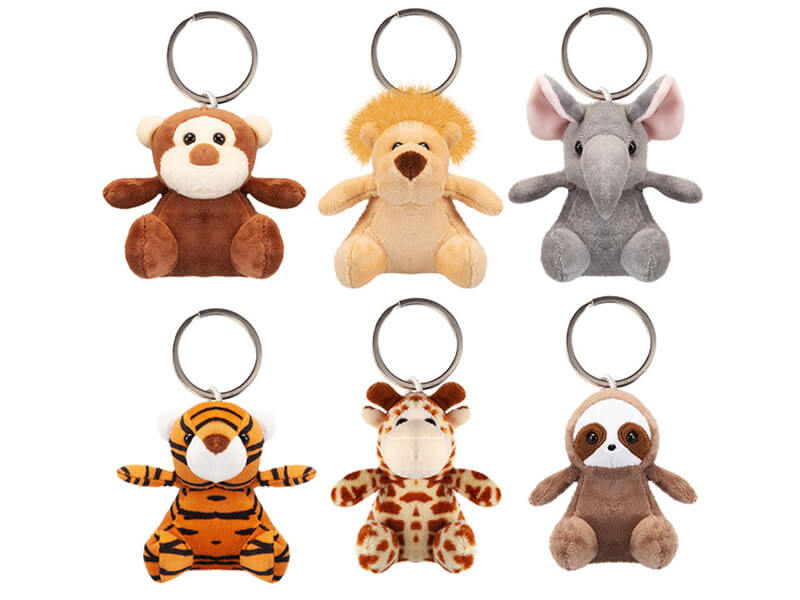 Kulcstartó, vadállatok, 10 cm plüss, 6 féle