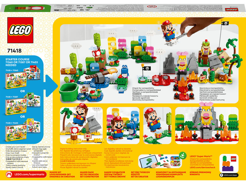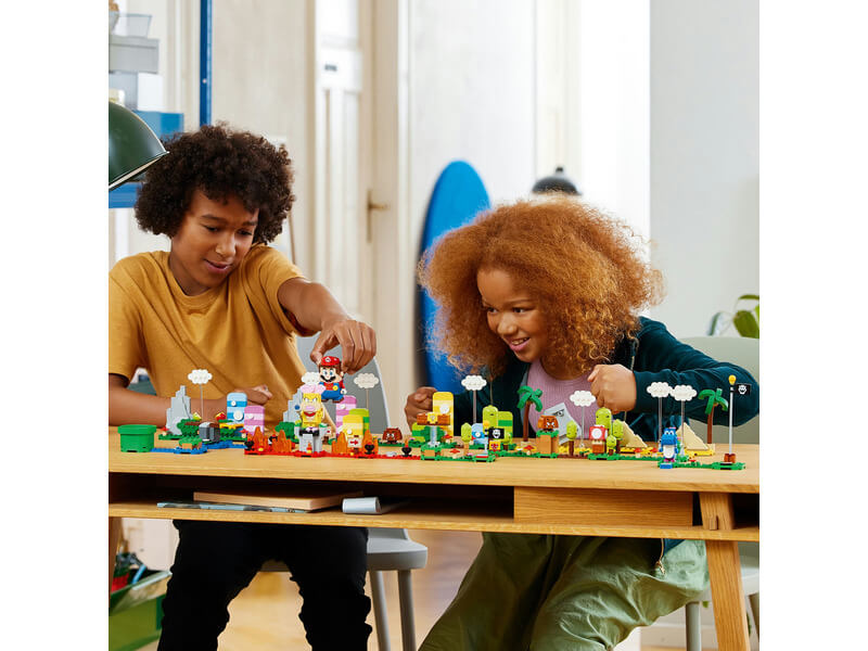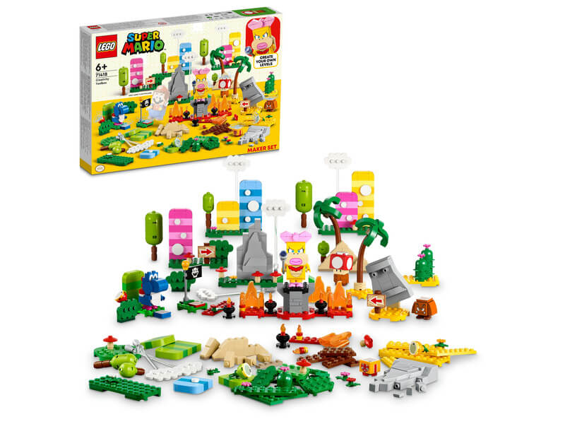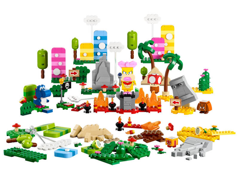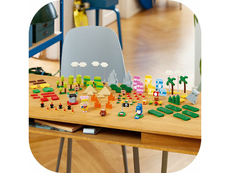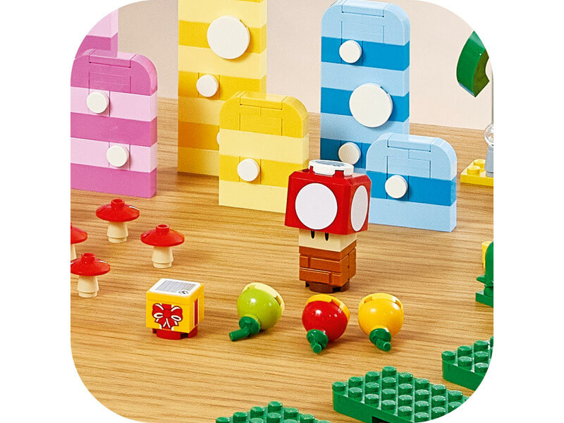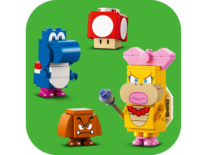 A szett megépíthető fákat, virágokat, hegyeket, gombákat, piramisokat, egy checkpoint zászlót és sok mást is tartalmaz, amikkel felturbózhatod a füves, sivatagos és lávás Super Mario™ pályákat. Szuper ajándékötlet 6 éves vagy nagyobb gyerekeknek, akiknek megvan az egyik kezdőpálya (71360, 71387 vagy 71403 – szükséges az interaktív játékhoz). A szett 3 gyümölcsöt, egy ajándékdobozt, egy interaktív elemmel ellátott Super Mushroomot és 3 LEGO Super Mario karaktert is tartalmaz: Wendyt, egy Kék Yoshit és egy Goombát. Társalkalmazás Töltsd le a LEGO Super Mario appot, ahol építési útmutatókat, kreatív ötleteket és sok más, mókás dolgot is találsz, amikkel felturbózhatod a gyerekek képzelőerejét. Gyűjthető játékkészletek A moduláris LEGO Super Mario kezdőpályákkal és kiegészítő szettekkel a rajongók számtalan módon kibővíthetik, átépíthetik, és testre szabhatják saját, egyedi pályáikat az órákig tartó, érmegyűjtő játékhoz.