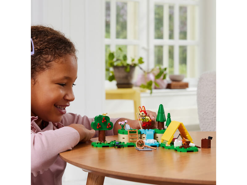 A LEGO® Animal Crossing™ szett tartalmaz egy Bunnie minifigurát, egy játék sátrat, rengeteg funkciót és egy részletgazdag jelenetet, amelyet a gyerekek úgy alakítanak át, ahogy csak akarnak.
