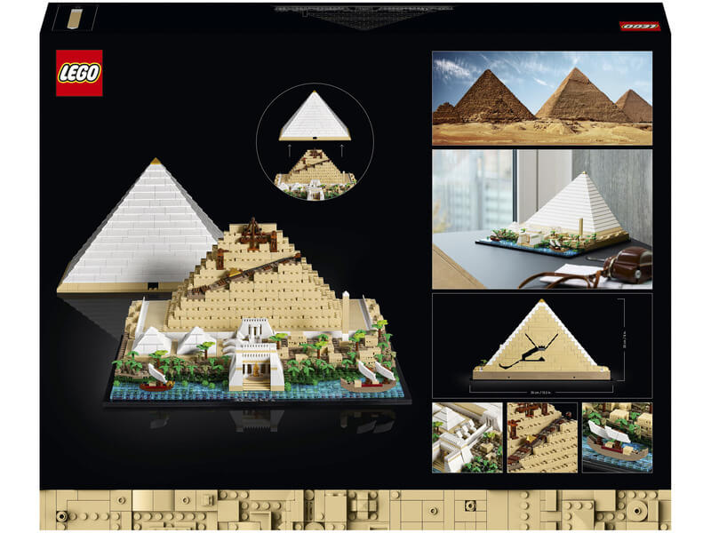 Építsd meg a nagy piramis gyönyörűen részletezett, keresztmetszeti modelljét, amiben megtalálod a fő alagutakat és a kamrákat, valamint a rendszert, amit valószínűleg a hatalmas sziklák mozgatásához használtak a piramis megépítése során. Képzeld el, hogyan nézhetett ki a Nílus-menti terület az ősi időkben, amit 2 kis piramissal, 2 halotti templommal, szfinx szobrokkal, egy obeliszkkel és sok mással alkothatsz meg. Kreatív szórakozás Az átlátható útmutató végigvezet a DIY építési kalandon, emellett az alkotásodat egy második modellel is összeillesztheted (külön kapható), így egy teljes piramisformát kaphatsz. Különleges ajándék Ez a kockákból épült gyűjtői darab a LEGO Architecture készletek része olyan felnőtteknek, akik imádják a kreatív időtöltést. Csodálatos meglepetés lehet saját magadnak, vagy bámulatos ajándék az építészeti műértőknek, a történelemrajongóknak vagy az utazás szerelmeseinek.