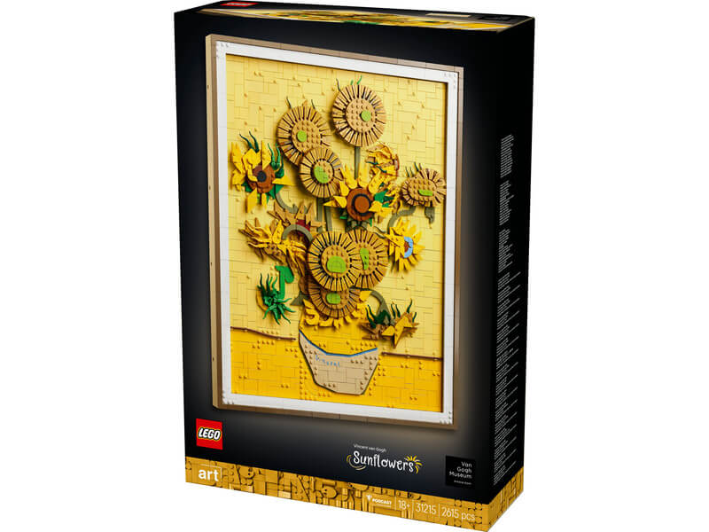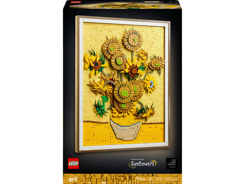 Építsd meg kockákból a világ egyik legkedveltebb festményének 3D-s változatát a LEGO® Art Vincent Van Gogh – Napraforgók (31215) fali dekorációs építőszettel! A szett az amszterdami Van Gogh Múzeum közreműködésével készült, – amely a világ legnagyobb Van Gogh gyűjteményének ad otthont, és az eredeti festmény is itt található – hogy a LEGO változat is megragadhassa annak a mesterműnek a szépségét, amelyet 1889-ben, Arles-ben festett a művész. Merülj el Van Gogh zsenialitásában és csodálatos színeiben a festmény háromféle sárga árnyalatának és a festő híres fény-árnyék technikájának a segítségével! Ez a 2615 darabból álló, fali dekorációs LEGO szett 16 napraforgót tartalmaz, amelyeknek beállíthatók a szirmai, továbbá egy levehető keret, egy Van Gogh aláírásával ellátott lapocska és egy kiállítást segítő, akasztós elem is a készlet része.