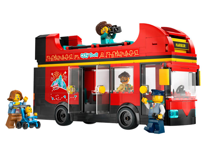 A készlet részei között megtalálhatók a buszsofőr és a turisták minifigurái, valamint a busz két emelete, amelyek bőven kínálnak lehetőséget a kreatív játékra és a városi élet jeleneteinek eljátszására. A busz teteje levehető, így a gyerekek könnyedén hozzáférhetnek a belső részekhez, és beülhetnek a minifigurákat a helyükre.