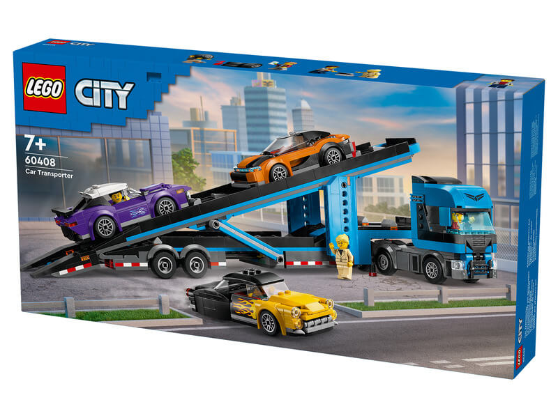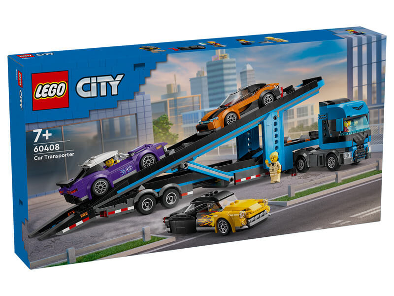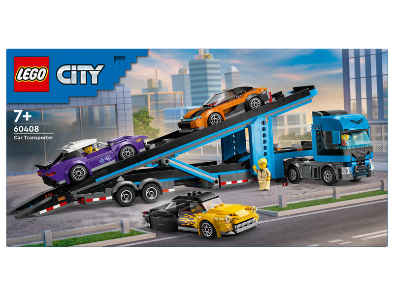 A LEGO City 60408 Autószállító kamion sportautókkal egy izgalmas LEGO készlet, amely lehetővé teszi a gyerekeknek, hogy megépítsenek egy autószállító kamiont, amely többféle sportautót szállíthat.