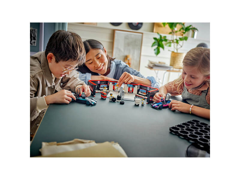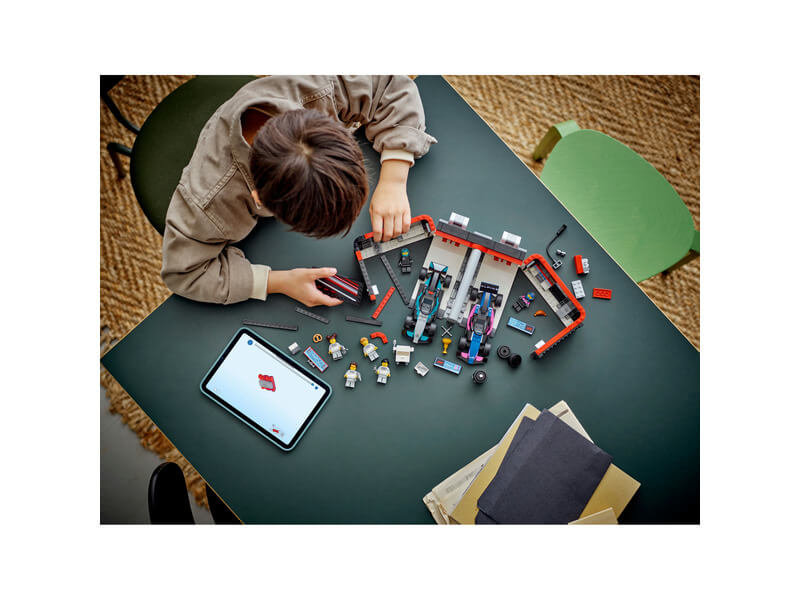 Kreatív építési élmény: A készlet több mint 200 LEGO elemet tartalmaz, amelyek lehetővé teszik a gyerekek számára, hogy saját versenyautójukat és garázsukat építsék meg.