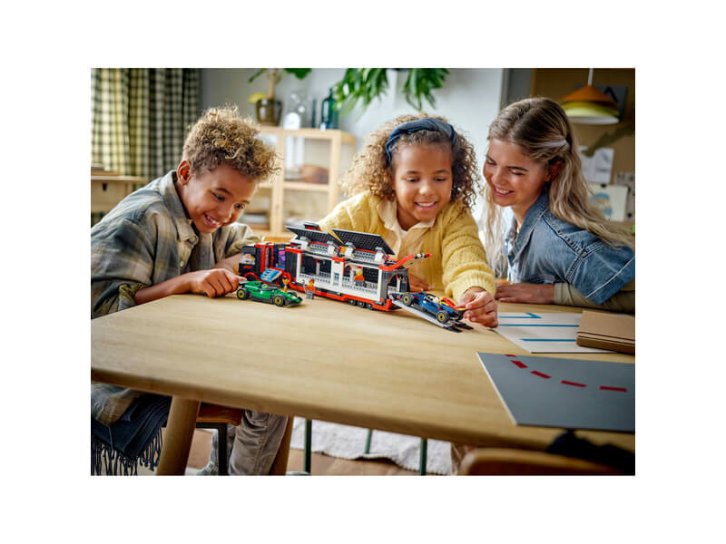 Olyan ajándékot keresel az ifjú versenyrajongódnak, ami Formula 1®-es versenyautókat rejt? Akkor íme a 8 éves kortól ajánlott LEGO® City F1®-es kamion, RB20 és AMR24 F1®-es autókkal játékkészlet! Ehhez a kiváló minőségű, játék szállítóautóhoz tartozik egy lecsatolható pótkocsi, ahol F1-es szimulátorszobát és teljesen lenyitható panelekkel felszerelt autóteret találsz. A gyerekek felemelhetik a hátfalat, és leengedhetik a rámpákat, hogy felemelhessék a vagány RB20 és AMR24 F1-es versenyautókat. A szetthez 2 pilótafigura, a csapat 3 minifigurája és egy trófea is tartozik, hogy gigantikus versenyeket játszhass el.