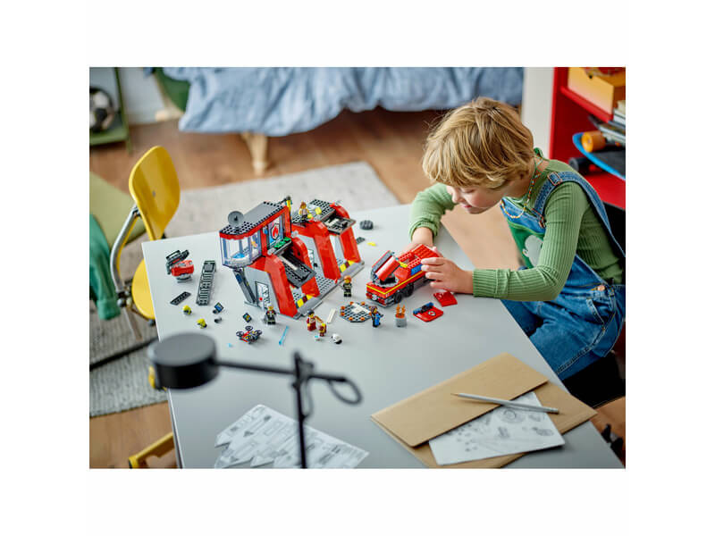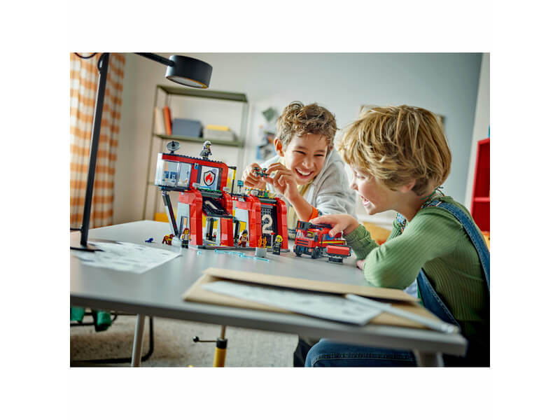 Élesítsd fel a játék izgalmát ezzel a LEGO® City Tűzoltóállomással és tűzoltóautó-játékkal 6 éves kortól – tele funkciókkal a szerepjátékot szerető gyerekek számára.
