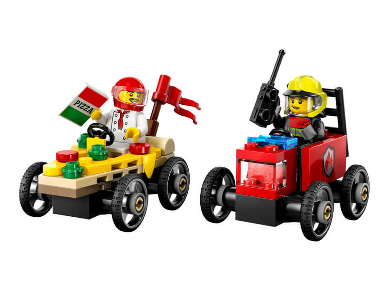 LEGO City Great Vehicles 60458 Pizzásautó vs. tűzoltóautó, versenyautós csomag