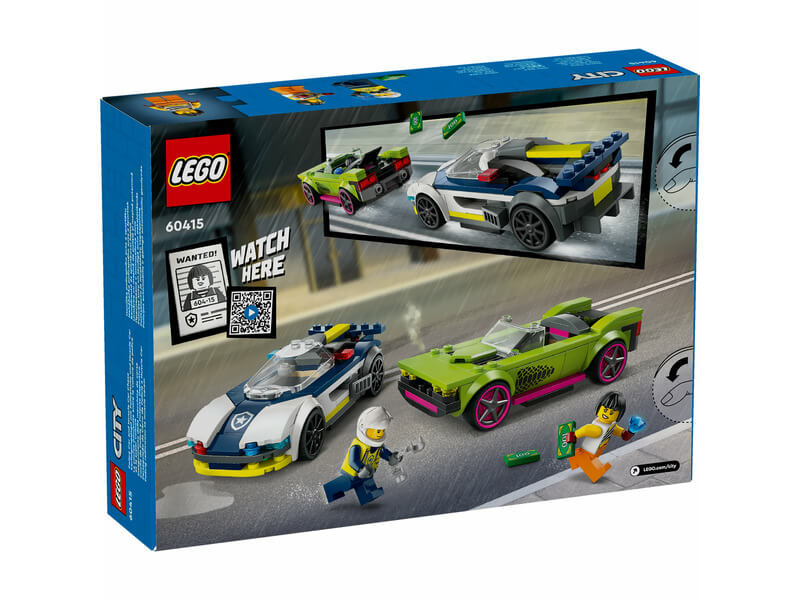 Engedd szabadjára a nagysebességű szórakozást és izgalmat ezzel a rendőrautós játékkészlettel 6 éves kortól! A fiúknak és lányoknak készült LEGO® City Rendőrautó és sportkocsi hajsza (60415) készletben található egy klassz rendőri elfogó és egy menekülő jármű, valamint egy rendőrtiszt és egy szélhámos minifigura a szórakoztató szerepjátékokhoz és történetmeséléshez. Ehhez a rendőrös játék építőkészlethez egy könnyen követhető, illusztrált építési útmutató, valamint egy lépésről lépésre vezető digitális útmutató is tartozik, ami a LEGO Builder alkalmazásban található. Vidd izgalmas kalandra fiatal építődet ezzel az intuitív építőtárssal. A gyerekek építés közben megjeleníthetik a modellek 3D-s változatát. Az alkalmazásban emellett nyomon követhetik az építési folyamatot, illetve virtuális játékkészleteket fedezhetnek fel és menthetnek el. A te városod, határok nélkül! A LEGO City készletek tökéletes ajándékok minden olyan gyermek számára, aki szereti a szerepjátékot. A funkciókban gazdag szerkezetek, valósághű járművek és inspiráló karakterek lehetővé teszik a gyerekeknek, hogy felfedezzék az őket körülvevő világot történetek és forgatókönyvek segítségével, amelyek szórakoztató és izgalmas módon ábrázolják az életet.