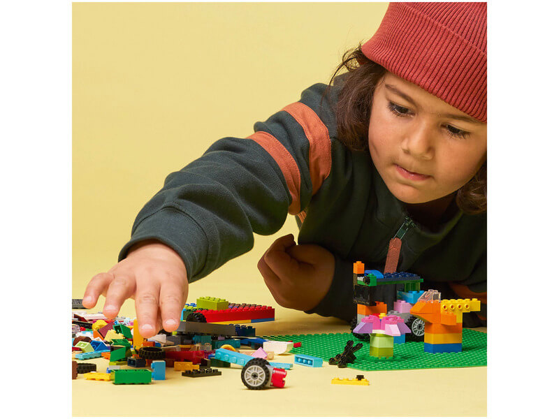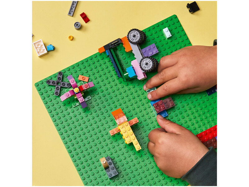 Készítsd elő a helyszínt a végtelen, kreatív játékhoz a LEGO® Classic Zöld alaplappal (11023). A több mint 25 cm-es zöld négyzetalaplap tágas, 32×32 bütykös LEGO tájat nyújt a gyerekeknek, amire építhetnek, valamint játszhatnak és kiállíthatnak rajta. Nagy képzelőerővel megáldott gyerekeknek tervezve. Inspiráld a LEGO építőket az építési lehetőségek sokaságával – a kertektől és erdőktől kezdve egészen a földönkívüli tájakig. Ez a kiváló minőségű alaplap elég stabil rögzítést biztosít ahhoz, hogy bármilyen szögben megtartsa a LEGO építőkockákat, akár még fejjel lefelé is! Ha pedig az építés véget ért, az erős rögzítésnek köszönhetően a gyerekek szállíthatják és kiállíthatják rajta az alkotásaikat, anélkül, hogy azok szétesnének. A gyerekek kreativitásának fejlesztése. Az építés, alkotás és fantáziálás során a szabad gondolkodásuk és problémamegoldó készségeik is fejlődnek.