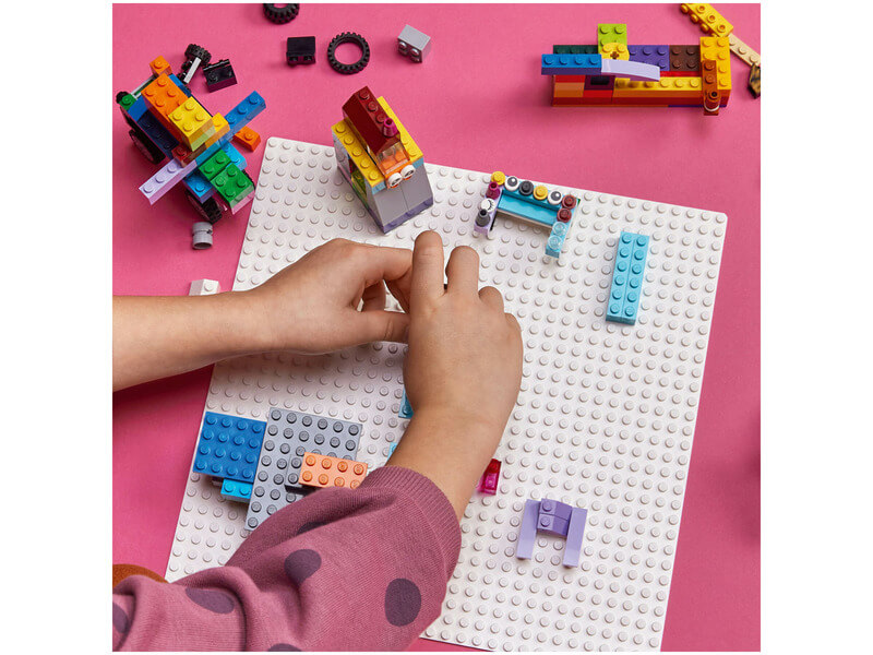 Fektesd le az alapokat a végtelen, kreatív játékhoz a LEGO® Classic Fehér alaplappal (11026). A több mint 25x25cm, 32×32 bütykös, kiváló minőségű LEGO négyzetalaplap, amire a gyerekek építhetnek, valamint játszhatnak és kiállíthatnak rajta. Fantáziadús játékra tervezve Inspiráld a LEGO építőket a végtelen építési lehetőségekkel – az utcai jelenetektől és kastélyoktól kezdve egészen a hegyvidékekig. Ez a kiváló minőségű alaplap elég stabil rögzítést biztosít ahhoz, hogy bármilyen szögben megtartsa a LEGO építőkockákat, akár még fejjel lefelé is! Ha pedig az építés véget ért, az erős rögzítésnek köszönhetően a gyerekek szállíthatják és kiállíthatják rajta az alkotásaikat, anélkül, hogy azok szétesnének. Kulcsfontosságú készségek fejlesztése. A LEGO Classic készletek egyenesen a gyerekek kezébe adják az önkifejezés lehetőségét és a végtelen játékot. Az építés, alkotás és fantáziálás során a szabad gondolkodásuk és problémamegoldó készségeik is fejlődnek.