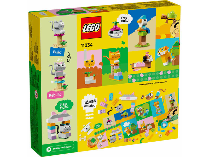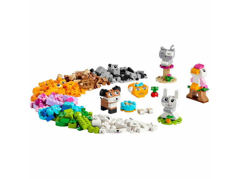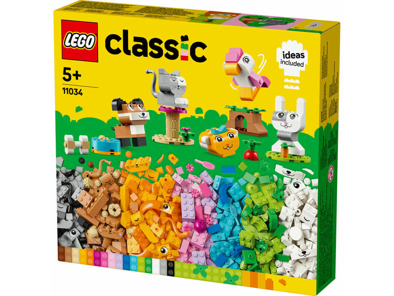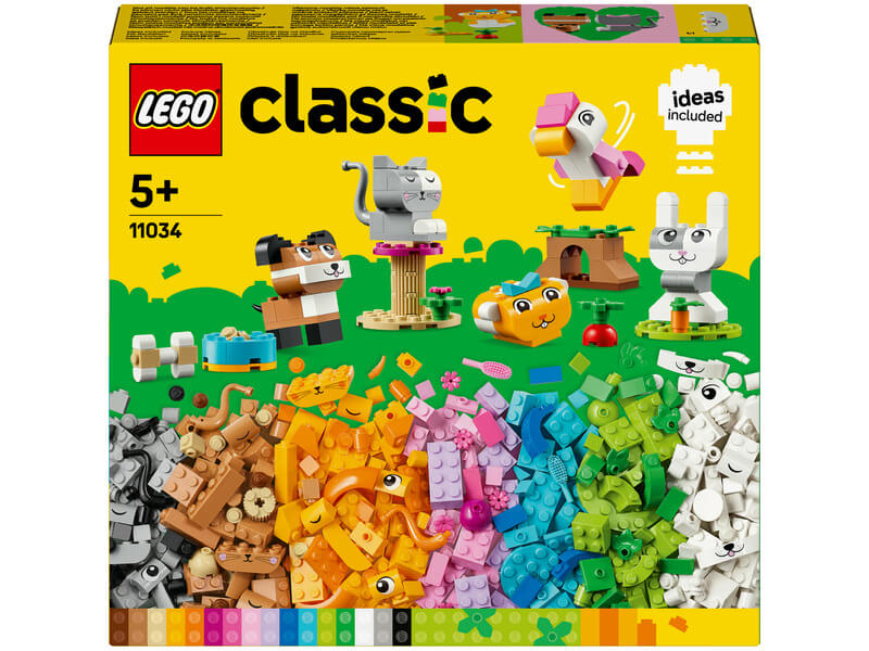 Szuper LEGO® Classic Kreatív háziállatok építőkészlet. A gyerekek aranyos játékállatokat építhetnek – kutyát, macskát, hörcsögöt, madarat, és nyuszit – majd testre is szabhatják őket.