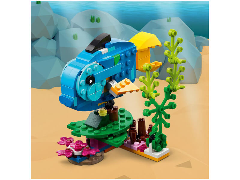 Ezután átalakíthatod egy kék-sárga hallá, ami a tengerben úszkál, vagy egy klassz békává, mozgatható lábakkal. A 3 az 1-ben készlet részletgazdag és beállítható modelljei órákig tartó szórakozást nyújtanak. 3 az 1-ben egzotikus állatok – A 7 éves vagy nagyobb gyerekek felfedezhetik az esőerdőt a LEGO® Creator 3 az 1-ben Egzotikus papagáj (31136) játékkészlettel, ami egy papagájt, halat és békát tartalmaz. Végtelen játéklehetőségek – Az állatbarátok különböző történeteket játszhatnak el a fán üldögélő papagájjal, a tenger mélyén úszkáló hallal és a játékos békával. Egyszerű építés – Ezzel a 253 elemből álló játékkészlettel a 7 éves vagy nagyobb építőkre izgalmas építési- és játékélmény vár, így a szett szuper jutalom vagy születésnapi ajándék.