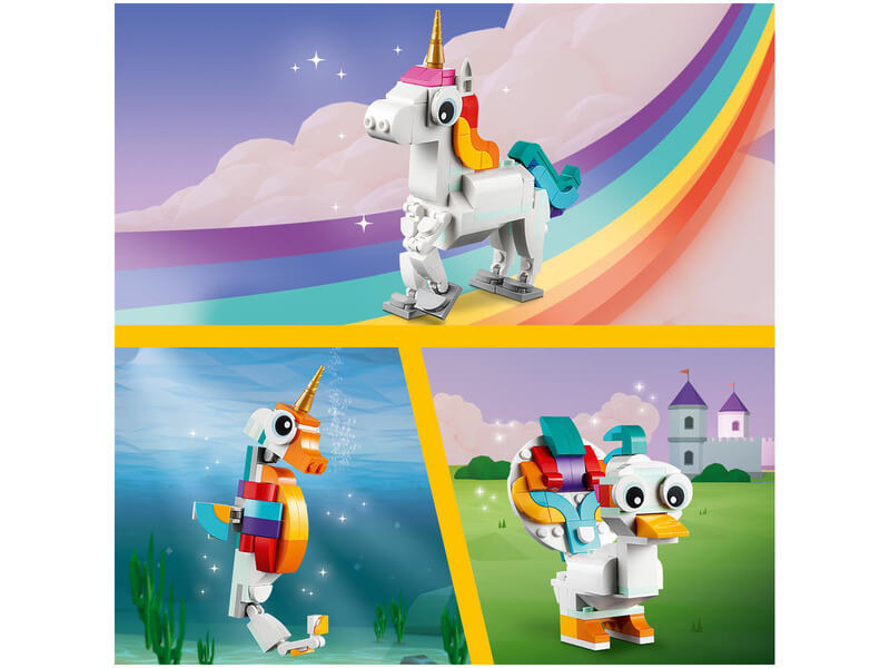 Ha még több elbűvölő kalandra vágysz, építsd át a modellt csikóhallá, ami a tengerfenék fölött úszkál, vagy egy aranyos pávává, amit színpompás farktollak díszítenek! Ezzel a 3 az 1-ben készlettel a választás a te kezedben van. Ez a 145 elemből álló játékkészlet vidám építési feladatot nyújt a 7 éves vagy nagyobb gyerekeknek, mielőtt belevágnának a fantáziadús játékba, így szuper meglepetés, valamint születésnapi vagy ünnepi ajándék.