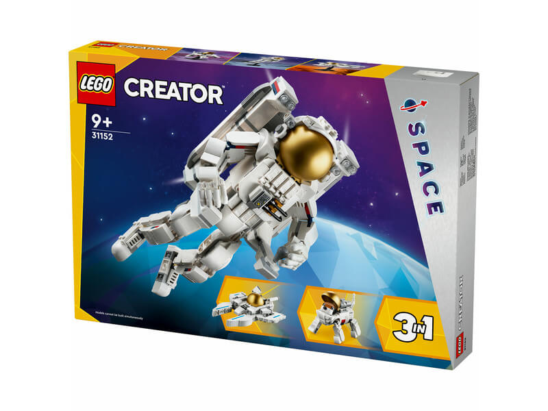 A 9 éves vagy annál nagyobb LEGO® rajongók kilőhetik magukat a világűrbe, hogy új bolygókat fedezhessenek fel az űrbéli kalandok eljátszása közben a LEGO Creator Űrhajós (31152) építőjátékkal. Az űrhajós figurához tartozik egy sugárhajtású hátizsák, egy felnyitható, arany színű sisakrostély, amelybe belehelyezhető egy minifigura (a szett nem tartalmazza), a lába, a lábfeje, a karja és az ujjai pedig mozgathatók. A fiúk és lányok 3 különböző játékszettet építhetnek meg: egy beállítható űrhajóst, egy futurisztikus űrkutyát beállítható lábakkal és farokkal, vagy egy viper jet űrhajót, amelybe belehelyezhető egy pilóta minifigura (a szett nem tartalmazza). Mind a 3 modell remek kreatív űrhajós ajándék lehet, és bemutatóállványok is tartoznakhozzájuk. Remek ajándékok lehetnek a LEGO Creator 3 az 1-ben játékok, amelyek 3 különböző modellt rejtenek egyetlen dobozban. A gyerekek imádni fogják a megépítést, az átépítést és az újraépítést. A 3 az 1-ben készletek hosszú órákon át boldoggá teszik a gyerekeket, és olyan modellválasztékot kínálnak, amellyel hódolhatnak a legfőbb szenvedélyeiknek, mint például a szupergyors járművek, a lenyűgöző állatok vagy a részletgazdag városi jelenetek