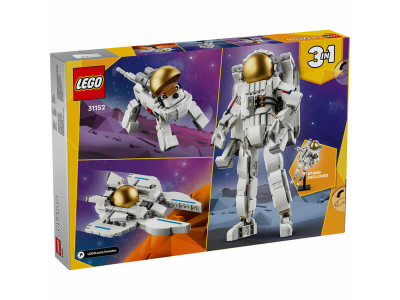 A gyermekek örömüket lelhetik az intergalaktikus akciókban a LEGO® Creator 3 az 1-ben Űrhajós építőjátékkal, majd átépíthetik egy űrkutyává vagy egy űrrepülővé.