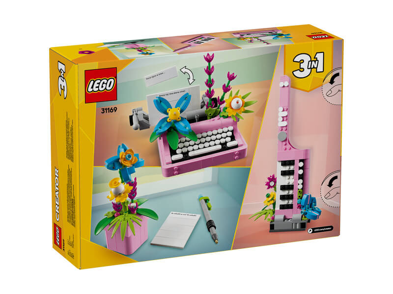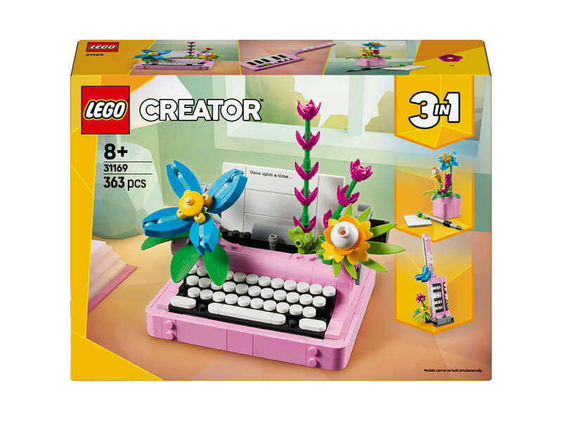 Lepd meg a virágok, a művészetek és a formatervezés ifjú rajongóit a LEGO® Creator 3 az 1-ben Írógép virágokkal (31169) játékkészlettel! Ezt a 8 éves vagy nagyobb gyerekeknek készült, kicsi, játék írógépet 4 kockákból épült, színes virág díszíti. A billentyűk és az írógéphenger mozgathatók, és tartozik hozzá egy kockákból épült papírlap is. A LEGO rajongók 3 különböző, virágos szettet építhetnek meg: az Írógép virágokkal játékot, egy állványon álló, billentyűs gitár játék hangszert virágokkal, vagy egy virágcserepet tollal és jegyzetfüzettel. Az átépíthető játékkészlethez 3 matrica is tartozik, amelyen elgondolkodtató mondatok szerepelnek, és amelyekkel a gyerekek feldíszíthetik a kockákból épült modelleket. A LEGO Creator 3 az 1-ben készletek remek ajándékok a gyerekeknek, hiszen egy szett 3 különböző építési lehetőséggel várja őket. Az átépíthető, 3 az 1-ben játékszettek örömteli és fantáziadús játékot nyújtanak, a széles választék pedig lehetővé teszi, hogy a gyerekek a legfőbb szenvedélyeiknek hódoljanak, például szupergyors járművek, lenyűgöző állatok vagy részletgazdag házak várnak rájuk. Fontos, hogy egyszerre csak egy modellt lehet megépíteni!