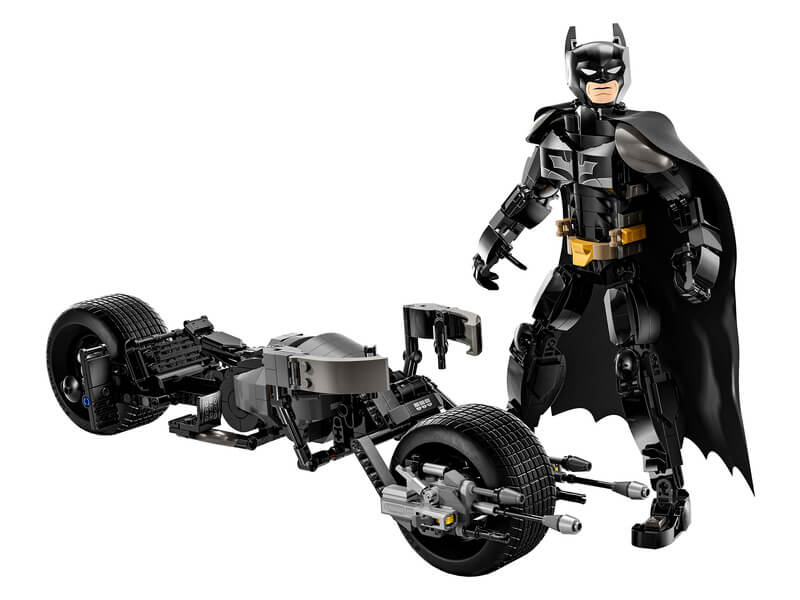 Ez a LEGO készlet tartalmaz egy nagyméretű, beállítható Batman figurát, amely részletesen kidolgozott és több ponton mozgatható, így a rajongók beállíthatják a kívánt pózokat. A készlet része a Batmotor is, amely Batman ikonikus járműveként ismert, és hozzáadja a játékélményhez a karakter autentikus megjelenését.