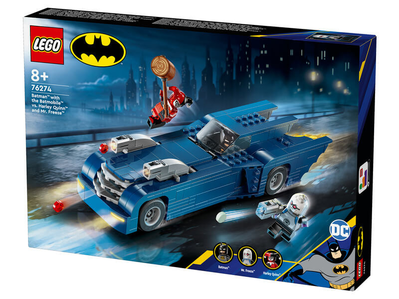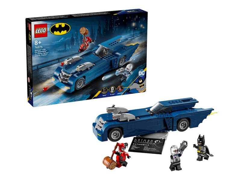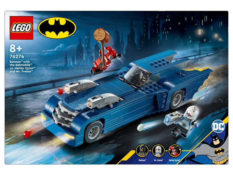 Keltsd életre a Batman™: A rajzfilmsorozat™ járműves akcióit a LEGO® DC Batman: Batman™ és a Batmobile™ vs. Harley Quinn™ és Mr. Freeze™ szettel! A Batman™: A rajzfilmsorozatból™ ismert Batmobile™ játék és a hozzá tartozó szuperhősfigura rengeteg szórakozással várja a 8 éves annál nagyobb gyerekeket. A nap végén, a kalandok befejezése után a gyerekek egy forgatható állványra helyezhetik a Batman™ és a Batmobile™ vs. Harley Quinn™ és Mr. Freeze™ (76274) szettet, hogy mindenki megcsodálhassa. Keltsd életre s Batman kalandokat a megépíthető LEGO® Batmobile-lal és a Harley Quinn, Mr. Freeze minifigurákkal! A LEGO Batman játéknak 2 levehető korongkilövője van a motorháztetőn, a vezetőülés ajtaja kinyitható, és felfedi a vezetőülést és az irányítópultot. A kipufogóból kinyúló lángelem forog, amikor a Batmobile mozog. A kiegészítők közt egy kalapács, egy korongkilövő és egy öntött köpenytalálható. A forgó állvány és az információs tábla 360 fokos látképet ad a LEGO Batman Batmobile-ról. A digitális szórakozás érdekében az építők felnagyíthatják és elforgathatják a szettek 3D-s változatát, és követhetik a haladásukat a vidám és intuití v LEGO Builder appal. Remek ajándék lehet olyan gyerekeknek, akik rajonganak Batmanért, a szuperhősökért és a menő járgányokért! Nagy Batmobile™ játék – Ebben a 435 elemből álló szettben a Batmobile összerakva 28 cm hosszú.